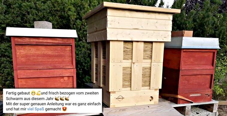 Klaus už má plně postavený Optimal a strávil dva dny budováním několika DIY Optimal Magazine. "Nyní jsem do svých starých úlů nainstaloval také kulatý vletový otvor o průměru 4 cm. Obrana proti vosám funguje mnohem lépe!"