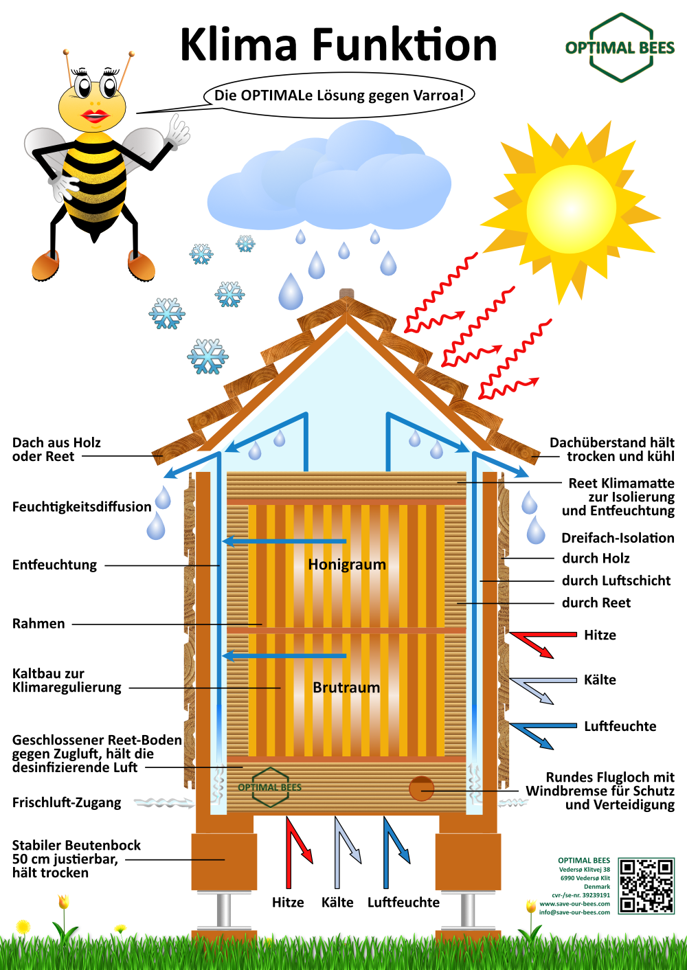 - La salute delle api attraverso la prevenzione mantenendo le api in un clima favorevole alle api invece di combattere i sintomi negli alveari troppo umidi attraverso farmaci a lungo termine