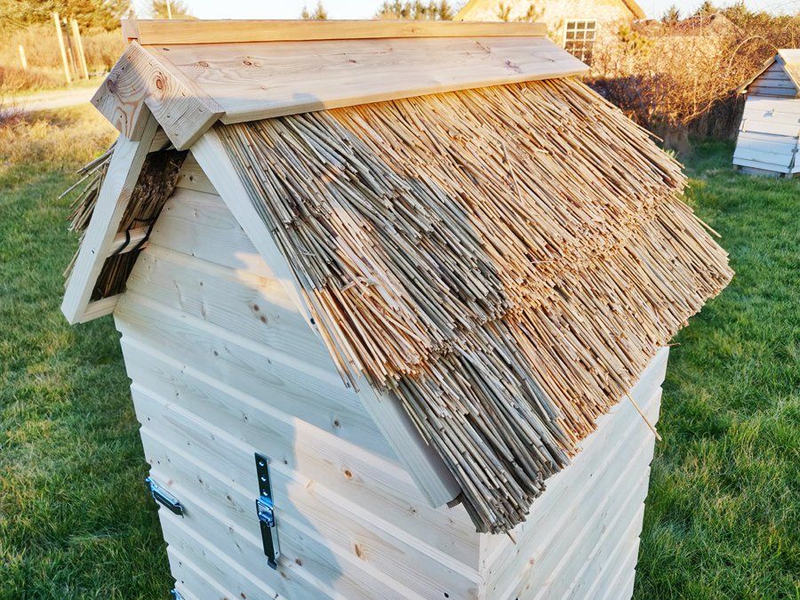 Unser Team aus dänischen Imkern, Bienensachverständigen/ Universität Åarhus, Konstrukteuren, Schreinern und Experten für Schilf-Verarbeitung baut dein Klima-Bienenhaus in allen Maßen.