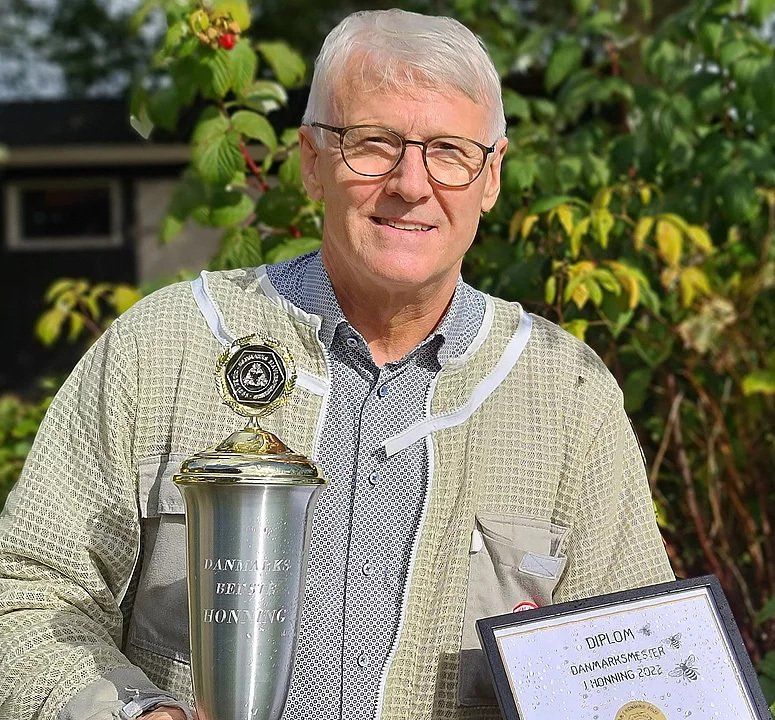 Jørn Tønder der, Imker Neuling im zweiten Jahr, hat mit artgerechtem, selbstverständlich behandlungsfreiem Imkern 2021 eine Silbermedaille und jetzt, 2022 den Goldpokal und die dänische Nationalmeisterschaft mit seinem artgerecht gewonnenen Honig errungen. Er bereitet sich für seine Teilnahme an den Weltmeisterschaften in Chile vor.
