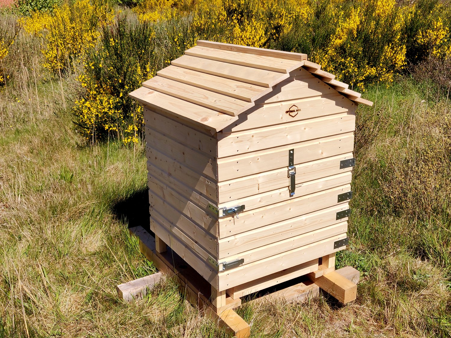 - Kein Plastik in der Beute, keine Plastikwaben und Rahmen, sondern ausschließlich 100% natürliches Bienen-Wachs und rückstandsfreie Produkte